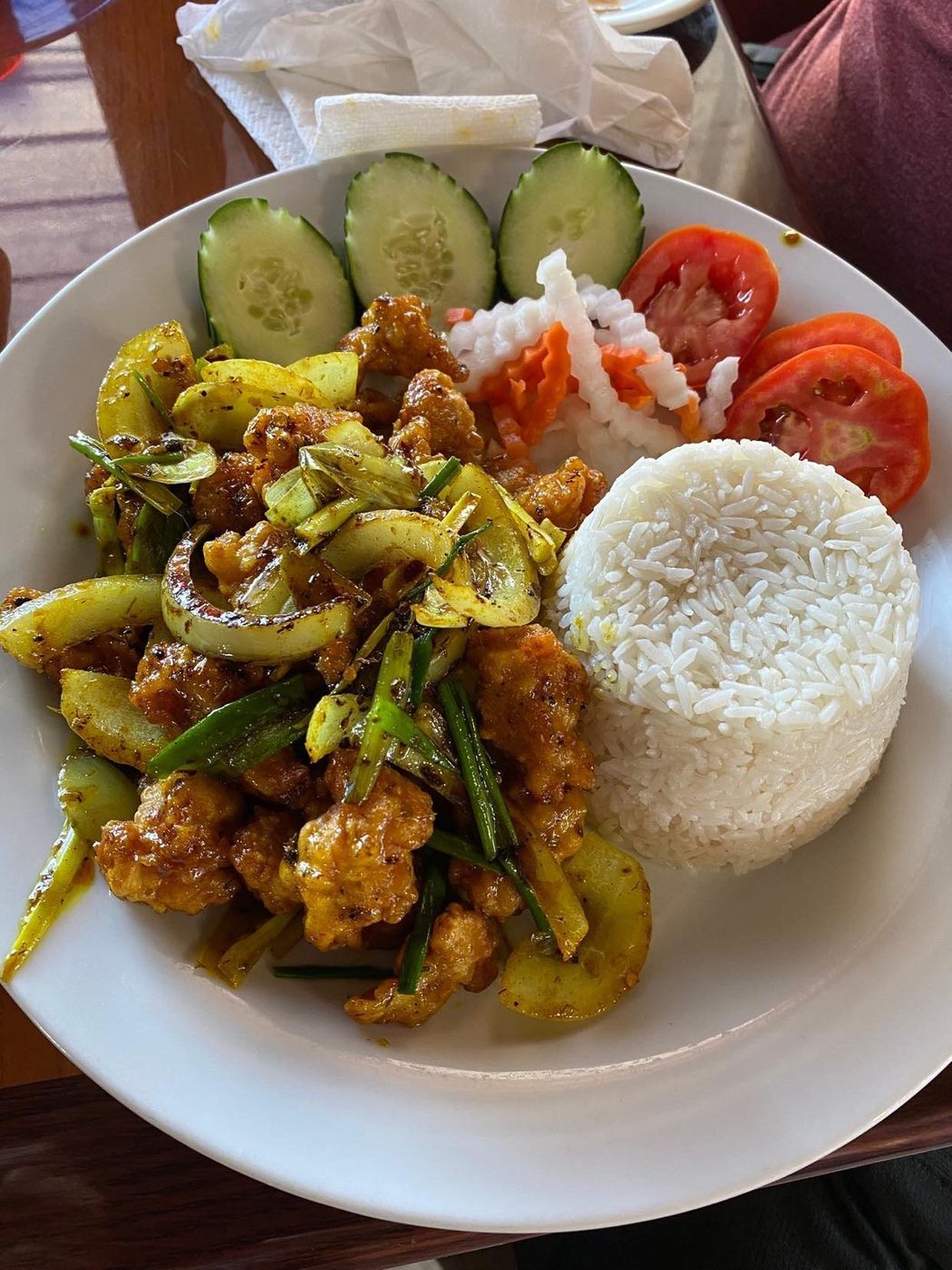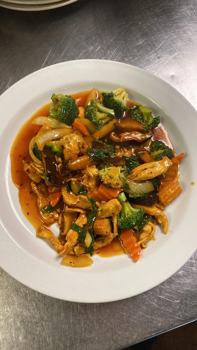 Our spiciest curry — bamboo shoots, onions, peppers, finished with fresh basil.
